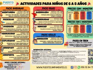 En cada pack viene definida la edad mínima para poder participar. No obstante, para poder participar en nuestras actividades deben tener mínimo 3 años. En algunas actividades se debe tener +5, +6 o +8. Como norma general, en las actividades náuticas, deben tener al menos 8 años cumplidos para poder participar. En las actividades en el tren, pueden participar con cualquier edad, siempre y cuando vayan acompañados de un adulto responsable.